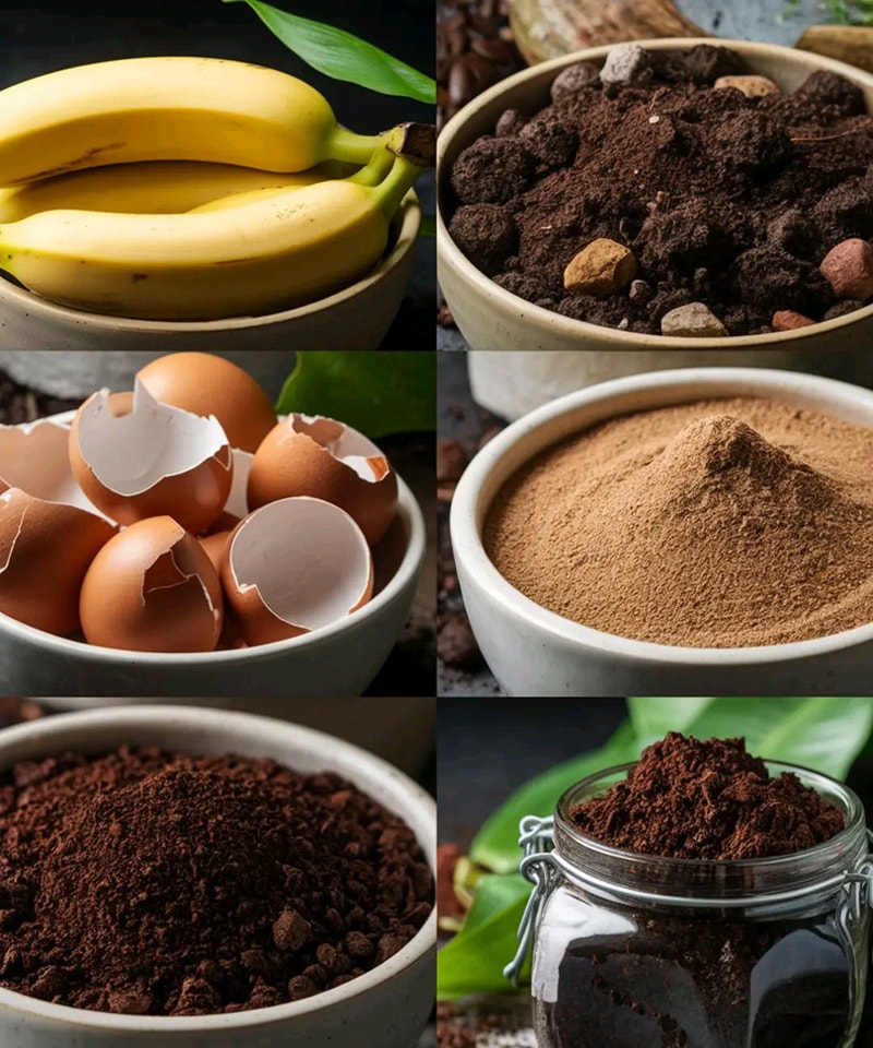 1. Skórki od banana 🍌 Są bogate w potas. Zakop je bezpośrednio w glebie lub namocz, aby uzyskać naturalny, płynny nawóz.