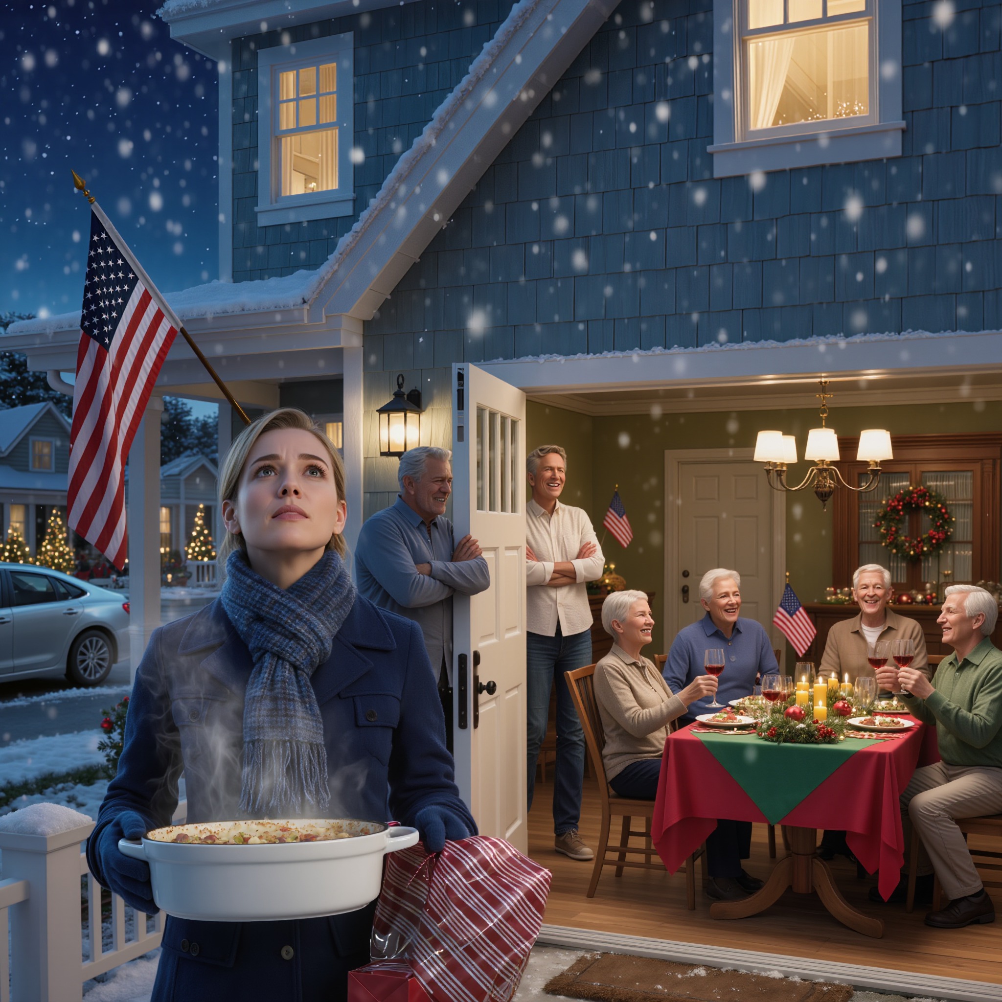 W chwili, gdy wyszłam na werandę, drzwi otworzyły się szybko i gwałtownie, jakby na mnie czekali. Ojciec stał tam sztywny, a matka tuż za nim. Zanim zdążyłam powiedzieć „Wesołych Świąt”, zablokował drzwi ręką.