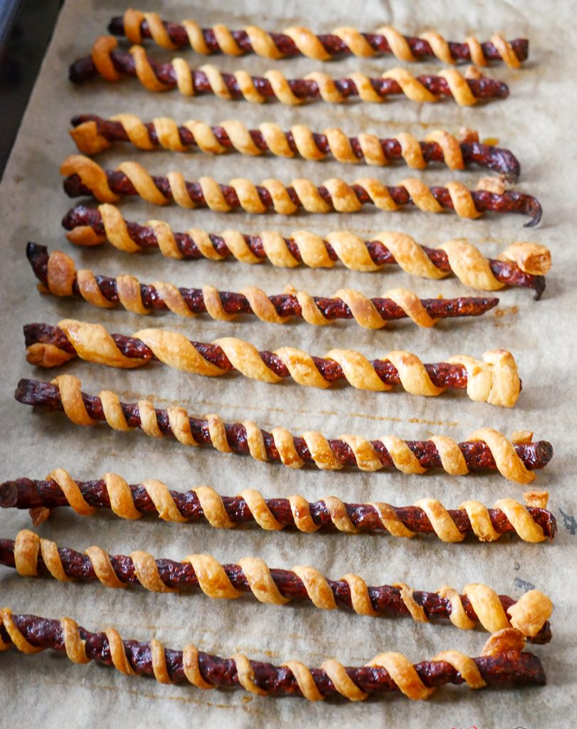 Kabanosy w cieście francuskim to prosta i smaczna przekąska imprezowa, która z pewnością zachwyci gości. Fajnie wygląda i świetnie smakuje. Doskonale sprawdzi się także jako przegryzka w ciągu dnia. Przepis na