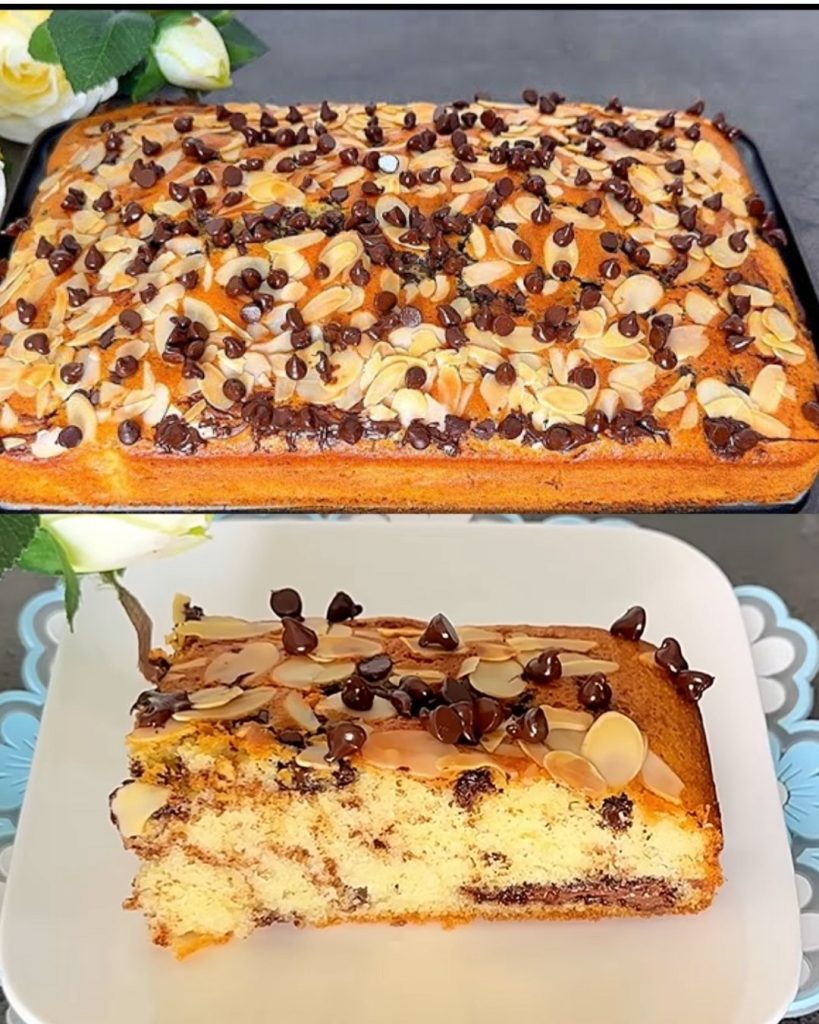 To ciasto z Nutellą i migdałami to pyszny deser, który łączy bogaty, kremowy smak Nutelli z chrupkością płatków migdałowych i słodyczą czekoladowych chipsów. Idealne na każdą okazję, to ciasto zachwyci