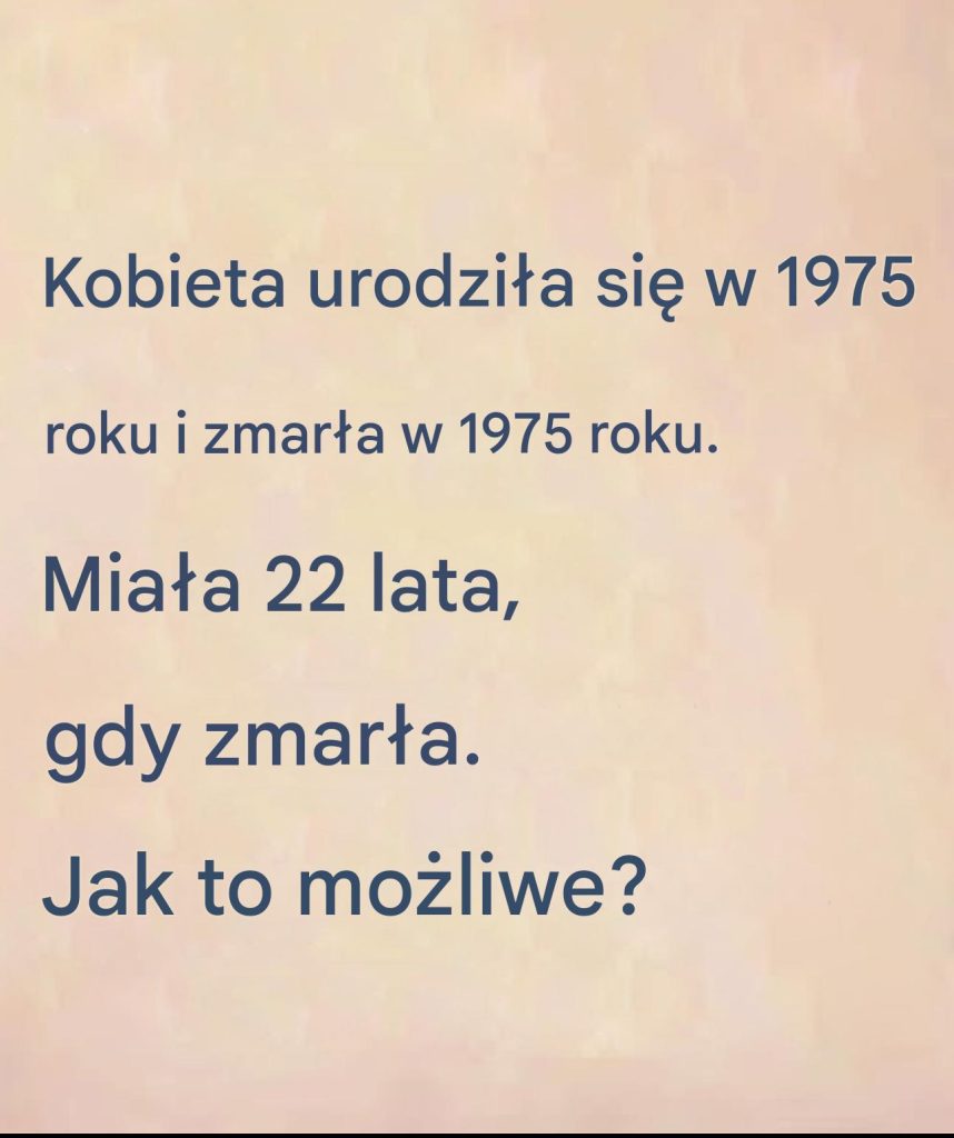 Wyobraź sobie: przeglądając aktualności, natrafiasz na to dziwne zdanie. „Kobieta urodziła się w 1975 roku i zmarła w 1975 roku. Miała 22 lata”. Zatrzymuje cię w miejscu. Niezrozumiałe? Niepokojące? Oczywiście,