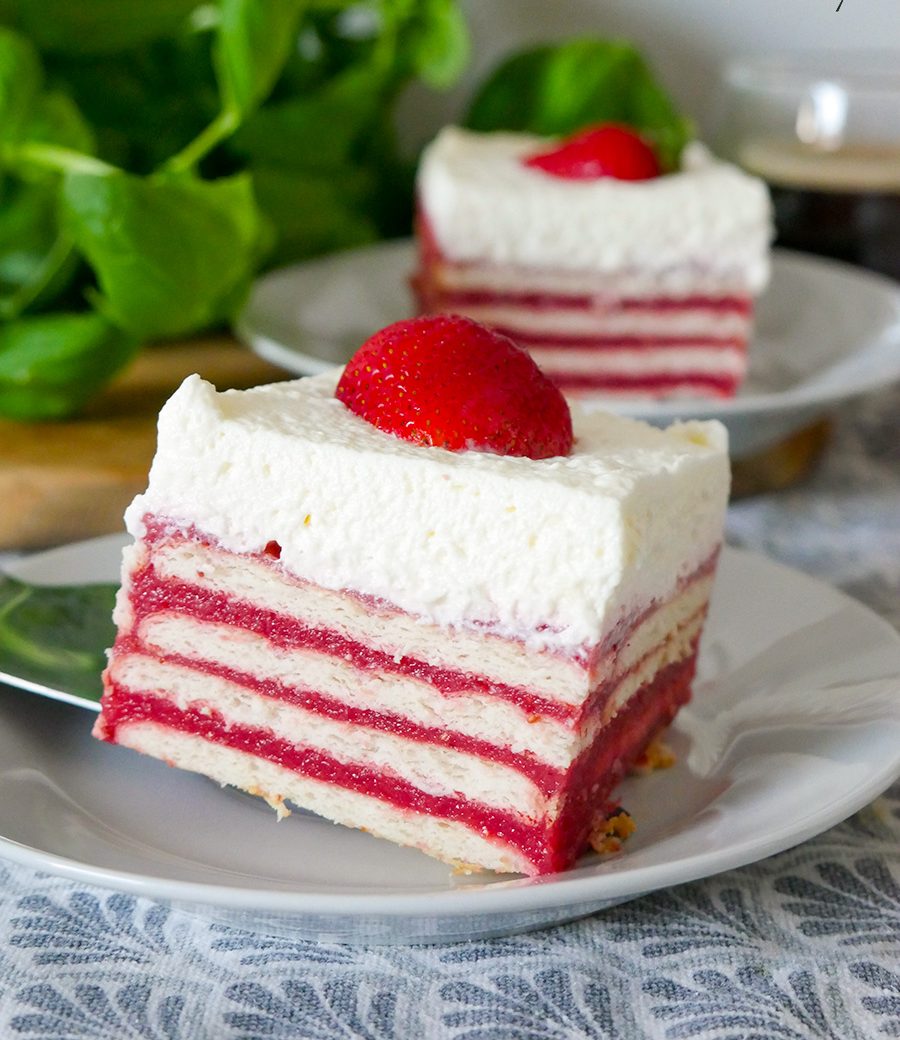 Pyszne ciasto truskawkowe bez pieczenia, które idealnie sprawdzi się jako deser do popołudniowej kawy. Niesamowicie delikatne, lekkie, wręcz rozpływa się w ustach! Ciasto przygotowane jest na herbatnikach, wykończone puszystą, bitą śmietaną, która idealnie podkreśla lekkość tego deseru. Zapraszam na przepis! Ciasto z pewnością Was zachwyci swoim smakiem, a także prostotą wykonania.