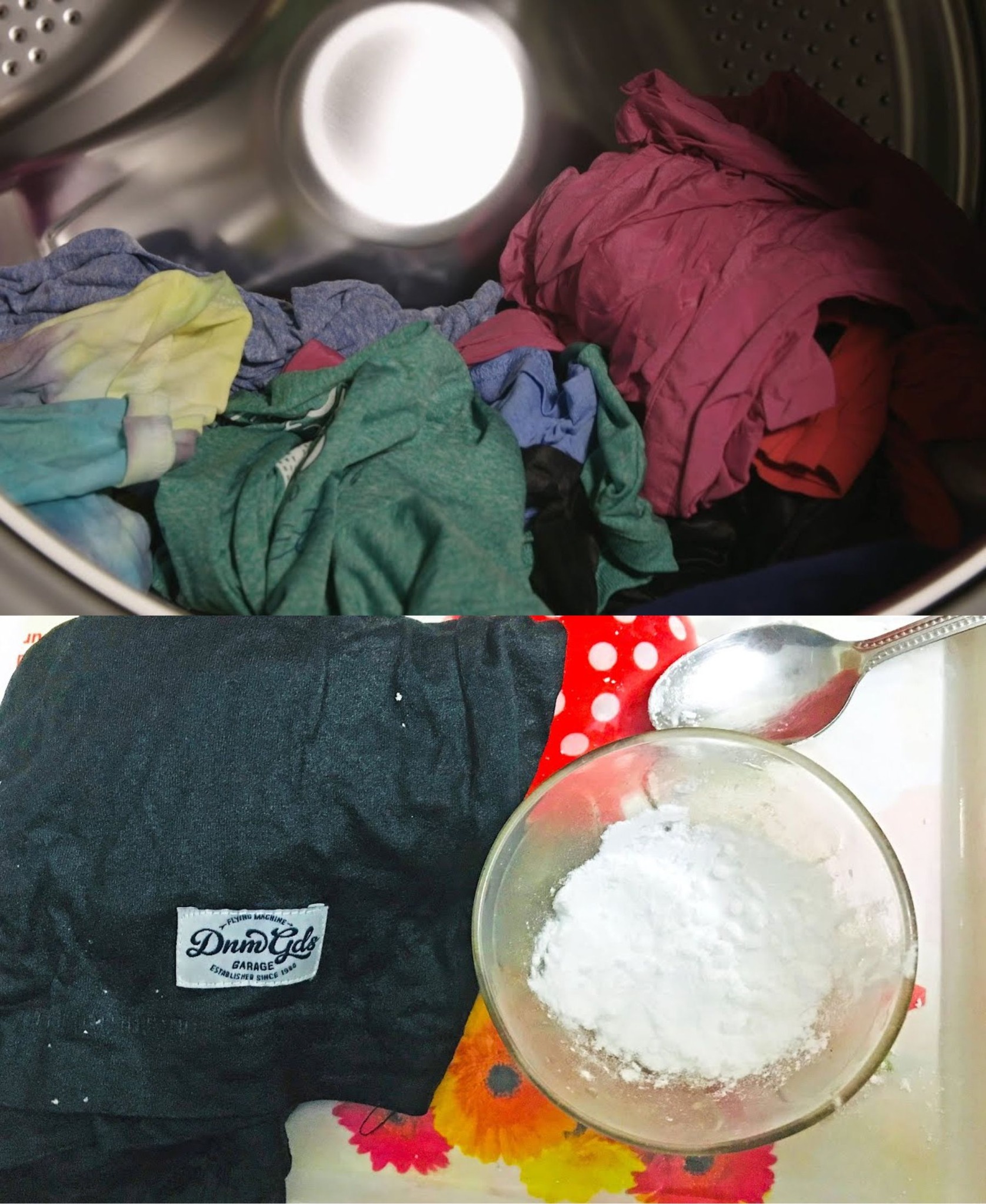 Na tym drugim wierzchu ubranie normalnie w pralce, dodając również łyżkę octu do bębna pralki, aby uzyskać lepszy efekt!