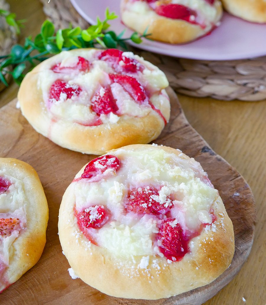 PRZEPIS NA DROŻDŻÓWKI Z TRUSKAWKAMI I KRUSZONKĄ