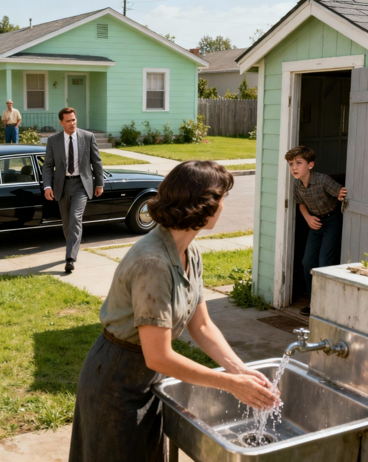Elena stała na swoim podwórku z podwiniętymi rękawami i prała ubrania w metalowej misce. Jamie bawił się w pobliżu, rysując patykiem obrazki na ziemi.