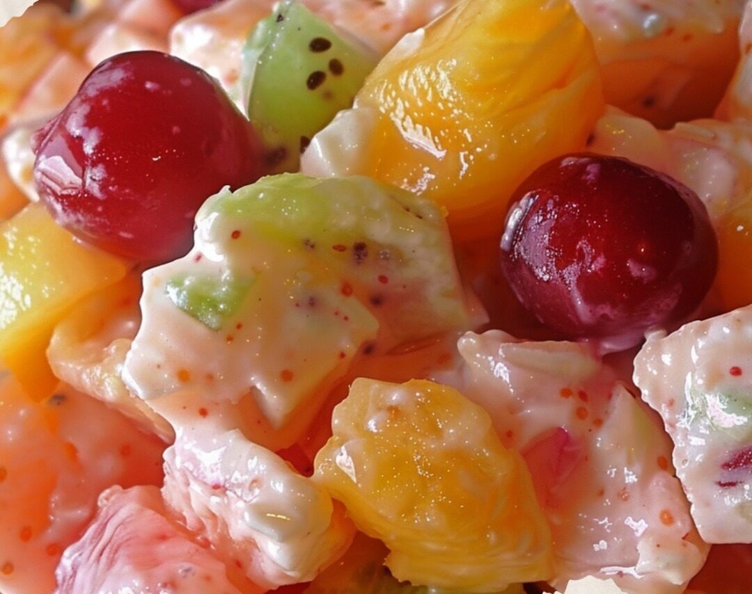 Ta słodka i owocowa sałatka deserowa jest szybka w przygotowaniu i nieodparcie pyszna! Połączenie owoców tropikalnych, nadzienia do ciasta wiśniowego i bananów tworzy bogate, żywe danie, idealne na każdą okazję.