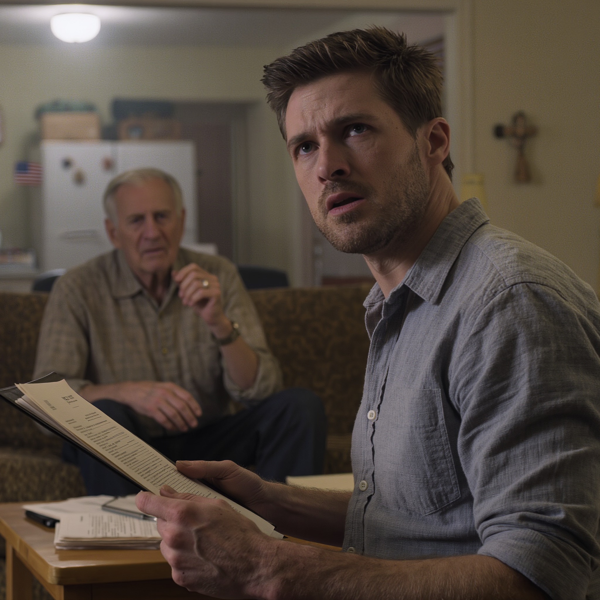 Wyciągnąłem kopertę. „Masz trzy zaległości. Są opłaty. To nie jest dramatyczne. Mówią ci, że wezmą dom”.