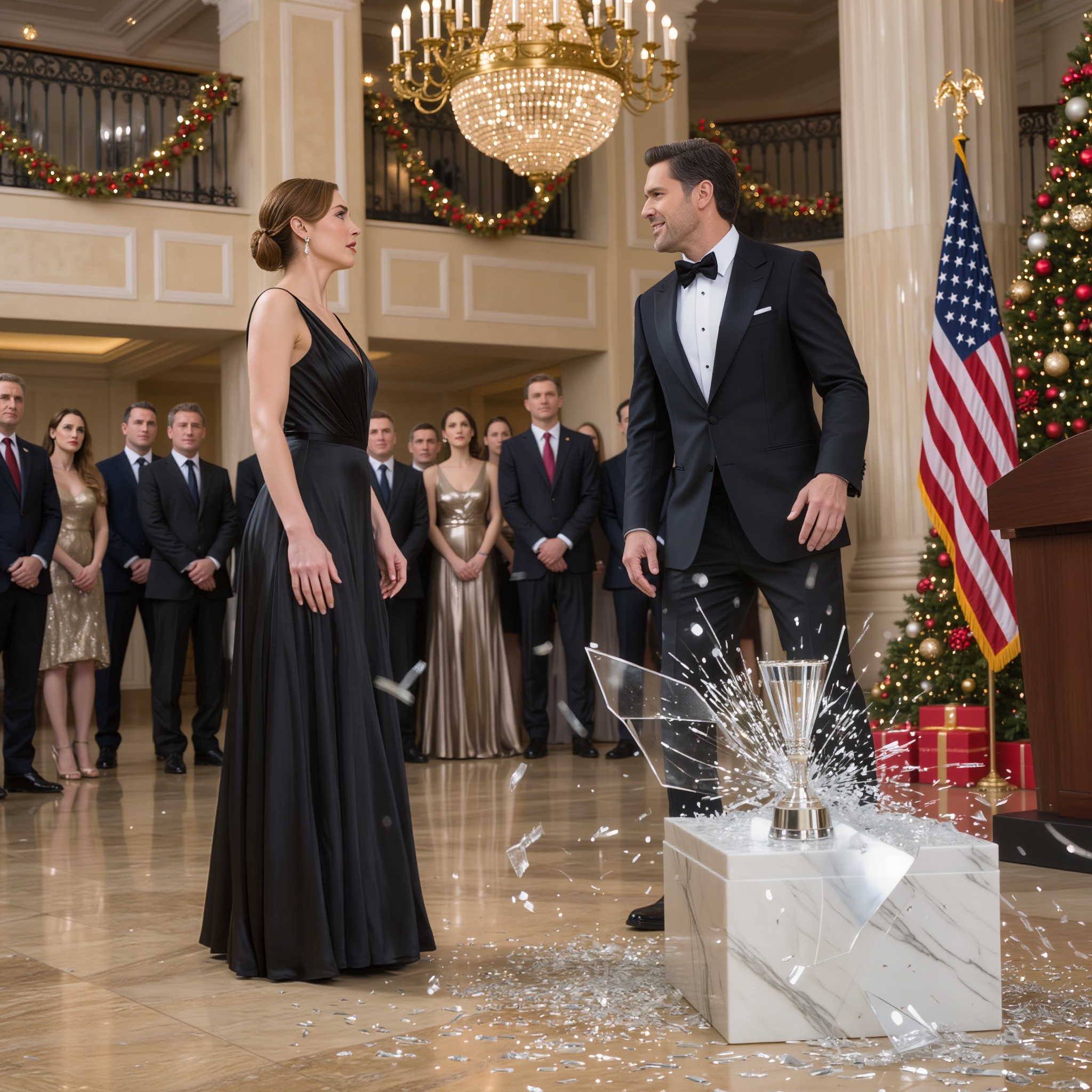 The marble floor of the ballroom was polished so bright it reflected the chandeliers like a second ceiling. The shattered trophy caught that light, and for a half second it glittered like a scattered necklace. Diamonds. Ice. A million tiny points of proof.