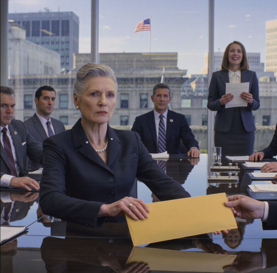 That morning, I arrived 5 minutes late. Traffic was bad, and I had stopped twice, unsure if I should even go. The elevator opened to a sleek reception area that smelled like eucalyptus and printer ink. A young assistant gave me a look that said she wasn’t expecting someone like me. I smoothed down my coat and followed her into the conference room. The door closed behind me with a soft click. There were seven people around the long table, all in dark suits. Rebecca sat at the head, her hair pulled back, eyes fixed on a stack of folders in front of her. She didn’t stand, didn’t say hello. She just nodded slightly as if to say, “You can sit over there.”