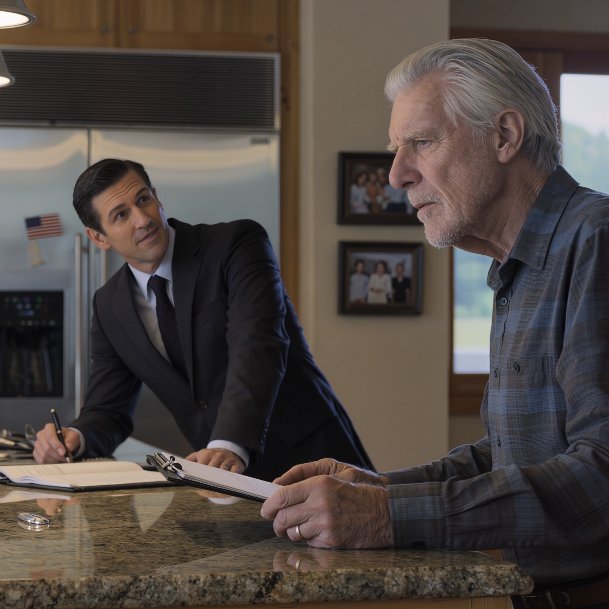 He pulled a folder from his briefcase and spread legal documents across my counter like he was dealing cards.