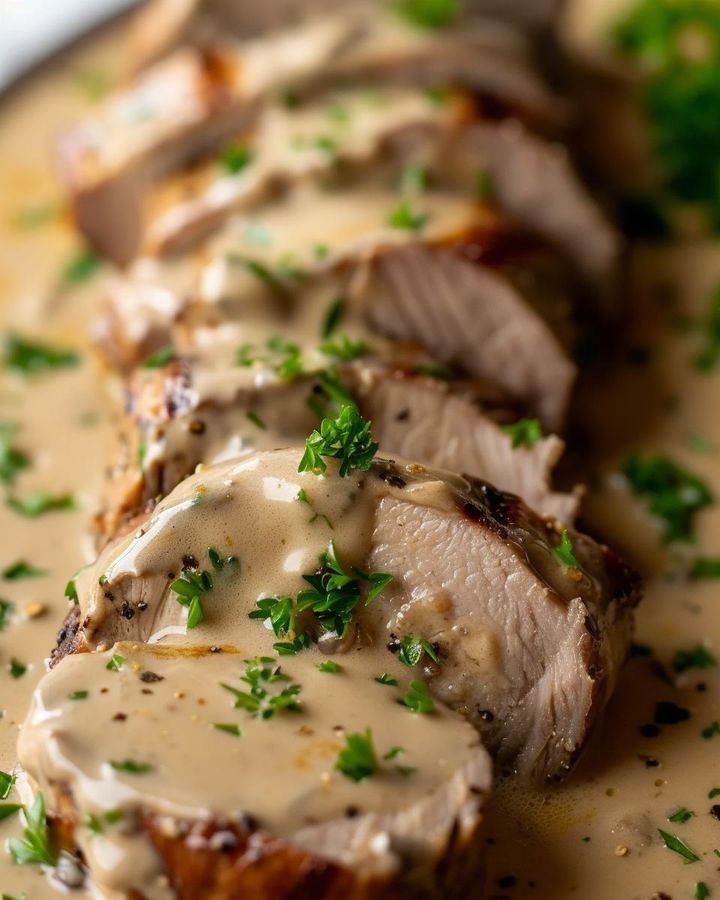 Tradycyjnie dania wieprzowe inspirowane kuchnią francuską są raczej podawane z warzywami korzeniowymi lub gratiną ziemniaczaną. Jednak, aby nieco odmienić normy, często podaję tę delikatną polędwicę wieprzową z łożem z puree z kalafiora z dodatkiem czosnku lub pieczonych szparagów, co nie tylko uzupełnia kremowość sosu, ale także dodaje odrobinę elegancji do podania. Bez wątpienia, porcja chrupiącego chleba lub ryżowy pilaw zdziała cuda, wchłaniając każdą ostatnią kroplę boskiego sosu. Reklama