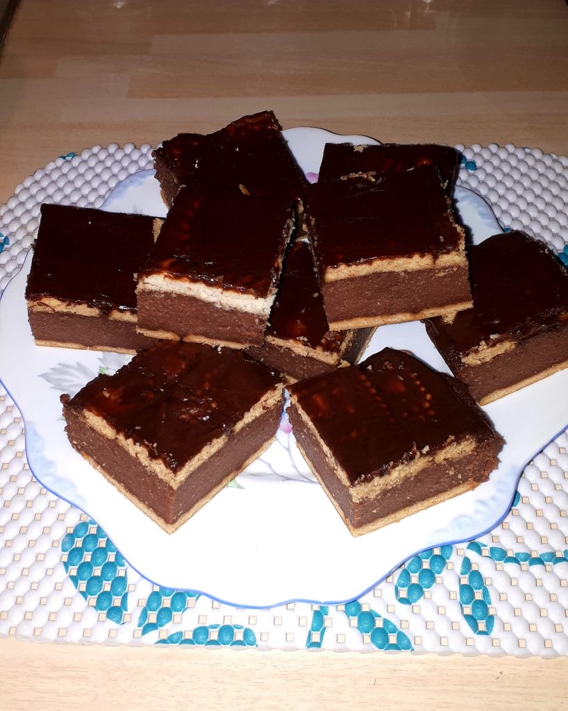 Kruche ciasto kokosowe, składające się z dwóch bardzo delikatnych blatów – jeden stanowi spód, a drugi wierzch. W środku znajduje się gruba warstwa lekko wilgotnej masy kokosowej. To proste ciasto,