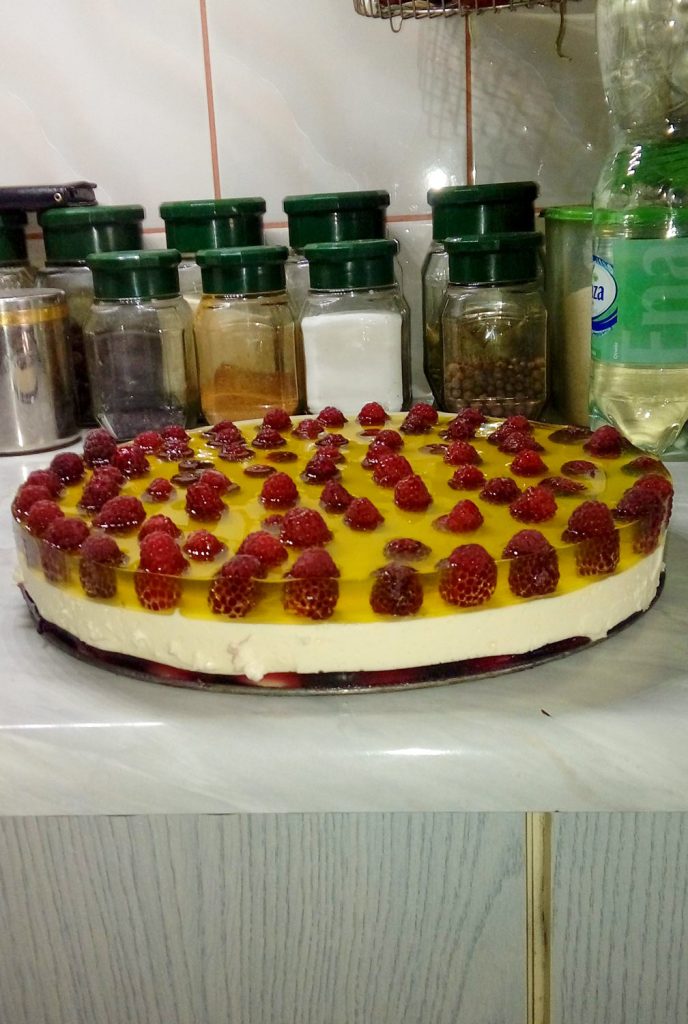 Przepis na sernik na zimno z owocami i galaretką. Prosty do przygotowania, lekki i przepyszny! Składniki 1 kg sera z wiaderka 1 galaretka cytrynowa 2 galaretki pomarańczowe 1 galaretka jagodowa