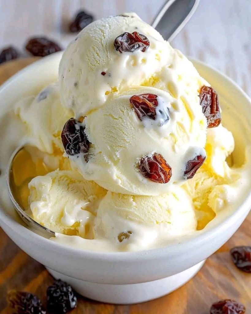 Przygotowanie rodzynek namoczonych w rumie: W małej misce wymieszaj rodzynki i karaibski rum. Pozostaw rodzynki do namoczenia na co najmniej 1-2 godziny lub na noc, aby uzyskać głębszy smak rumu.