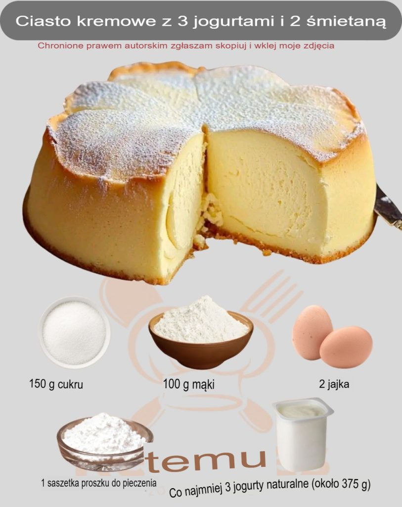 To ciasto jogurtowe to prawdziwy hit! Jest puszyste, wilgotne i lekko kremowe, a jego przygotowanie zajmuje mniej niż godzinę. Idealne na deser, do kawy czy jako słodka przekąska. Proste składniki