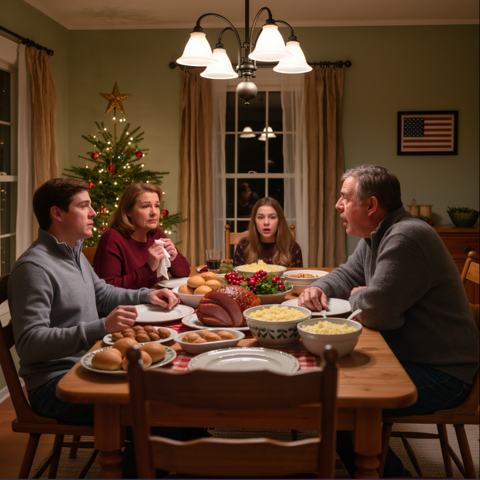 Kolacja wigilijna prawie dobiegła końca, gdy tata odłożył widelec, spojrzał mi prosto w oczy i powiedział: „Jesteś ciężarem, Masonie. Nie możesz tu dłużej mieszkać”.