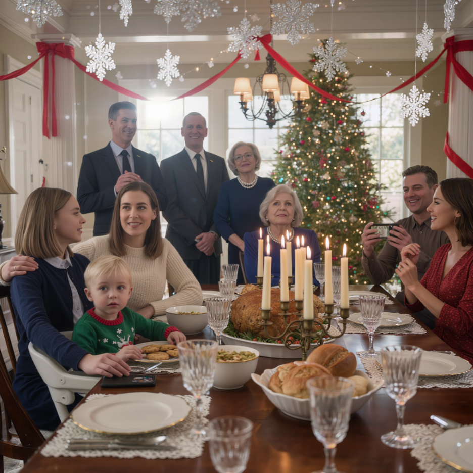 Jadalnia była udekorowana sztucznymi srebrnymi płatkami śniegu i czerwonymi wstążkami – tandetnymi świątecznymi dekoracjami, które za wszelką cenę starały się zamaskować chłód panujący pod spodem. Siedziałem przy masywnym mahoniowym stole w posiadłości rodziny Harrisów, obserwując mojego trzyletniego syna Tylera, dłubiącego w puree ziemniaczanym maleńkimi paluszkami.