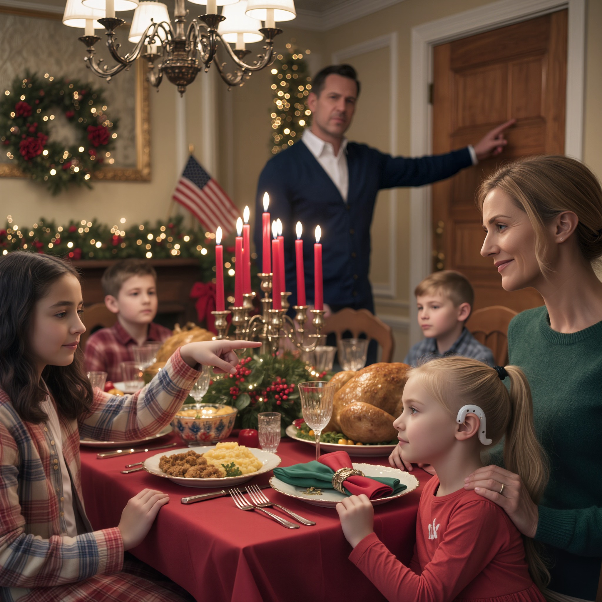 Dłoń mamy zamarła w połowie drogi do szklanki z wodą. Mój mąż, David, spiął się obok mnie, ale delikatnie położyłam dłoń na jego ramieniu. „To aparat słuchowy” – powiedziałam cicho. „Maya ma umiarkowany ubytek słuchu”.