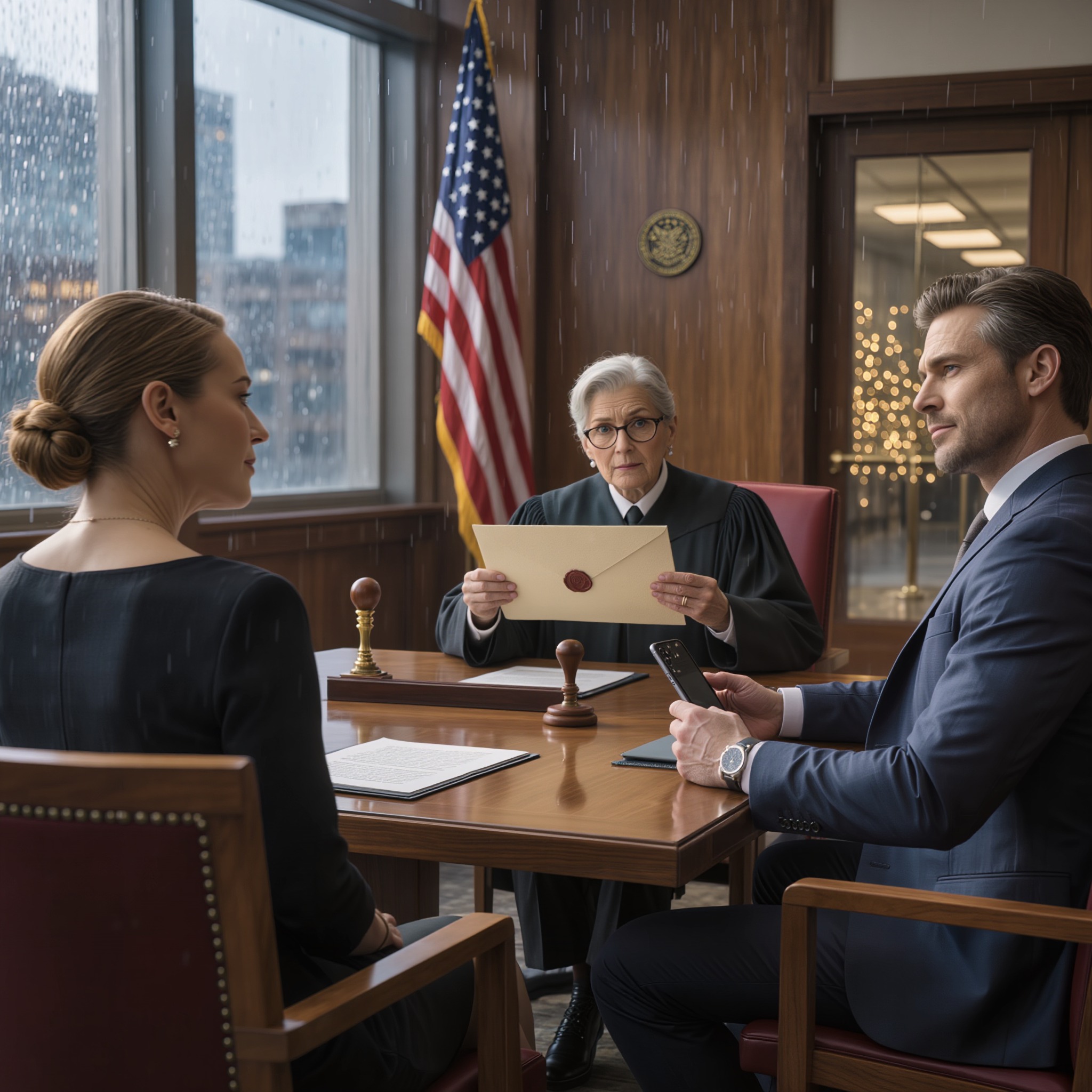 „Warunki wydają się standardowe” – powiedziała sędzia Keats beznamiętnym głosem. „Umowa przedmałżeńska egzekwowana. Żadnych alimentów. Majątek odrębny pozostaje odrębny”.