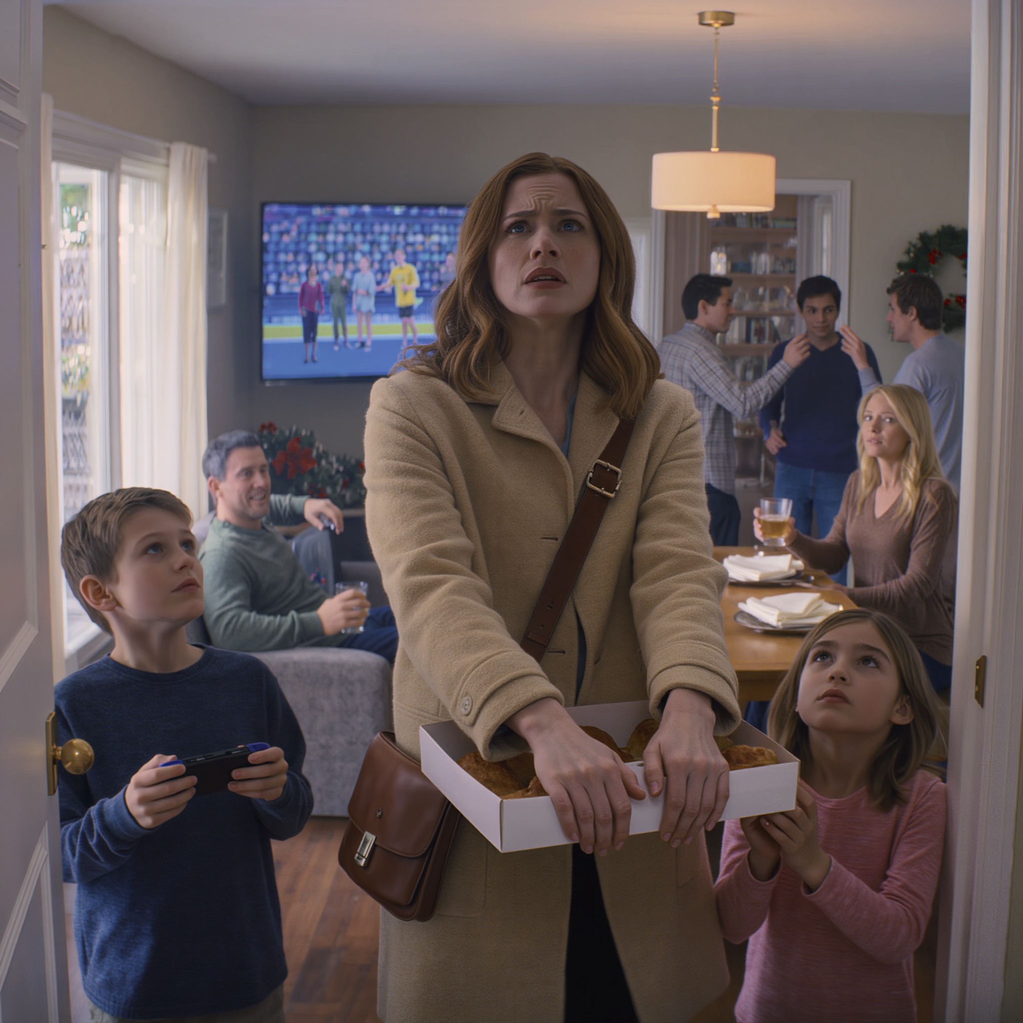 Przyjechałem na świąteczny brunch z dziećmi, niosąc białe pudełko po wypiekach przewiązane czerwono-niebieskim sznurkiem – takie, które kupuje się tylko wtedy, gdy naprawdę chce się komuś pokazać, że się spróbowało. Drzwi wejściowe były już uchylone, sztuczny wianek wisiał krzywo, a maleńka, wyblakła od słońca amerykańska flaga tkwiła w plastikowych gałęziach niczym na poczekaniu. W środku telewizor grzmiał jakiś poranny teleturniej, światła były zbyt jaskrawe jak na niedzielę, a powietrze było już gęste od tłuszczu z bekonu i taniej wody kolońskiej.