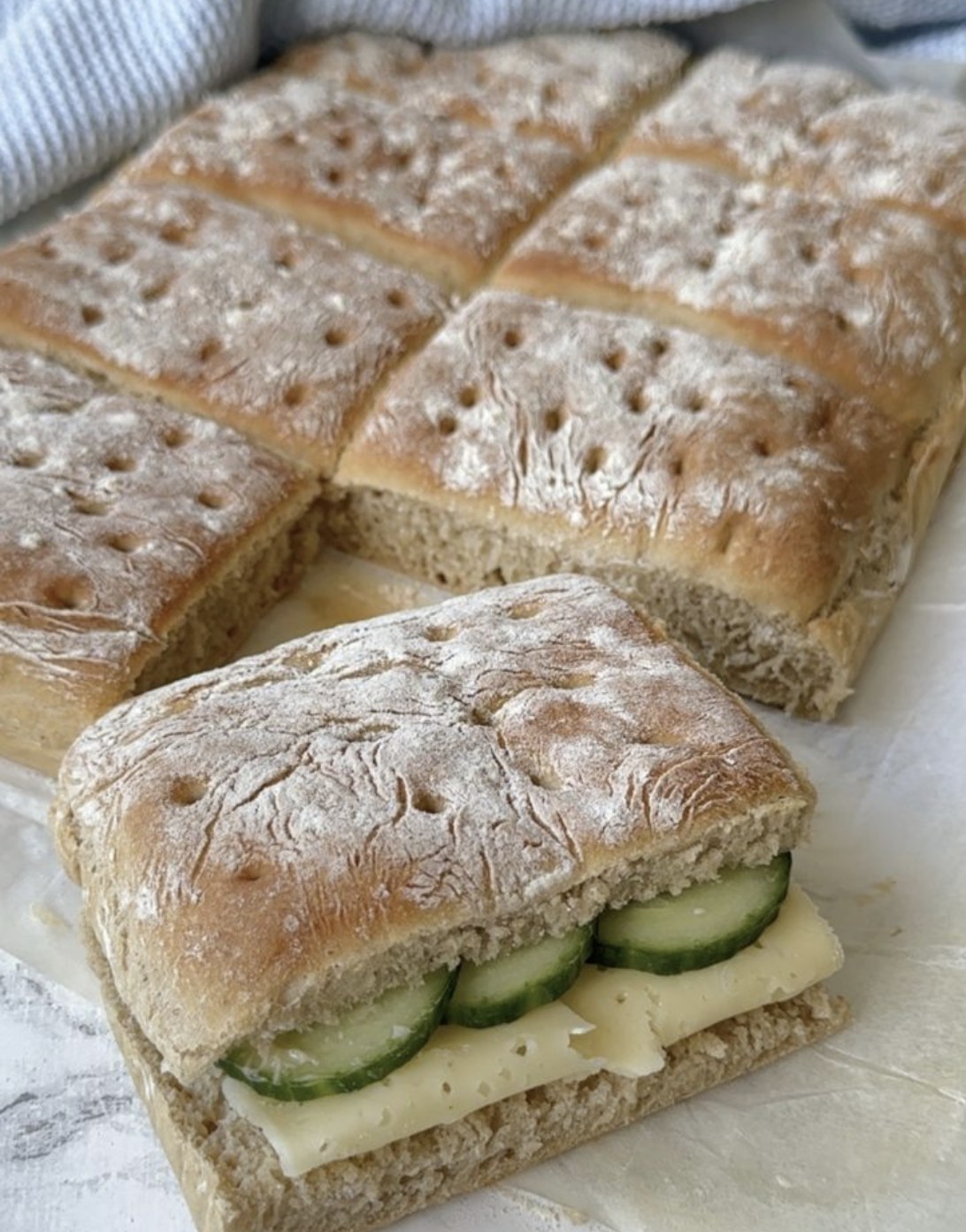 ŁATWE W PIECZENIU Pyszny chleb, którego nie trzeba wyrabiać i który wyrasta tylko raz bezpośrednio w blasze do pieczenia lub na blasze do pieczenia. Ciasto wyrasta przez godzinę (trochę dłużej niż zwykle), ponieważ jest to tylko jedno wyrastanie. Idealne, gdy chcesz szybko upiec! Pyszny i dobry chleb śniadaniowy!