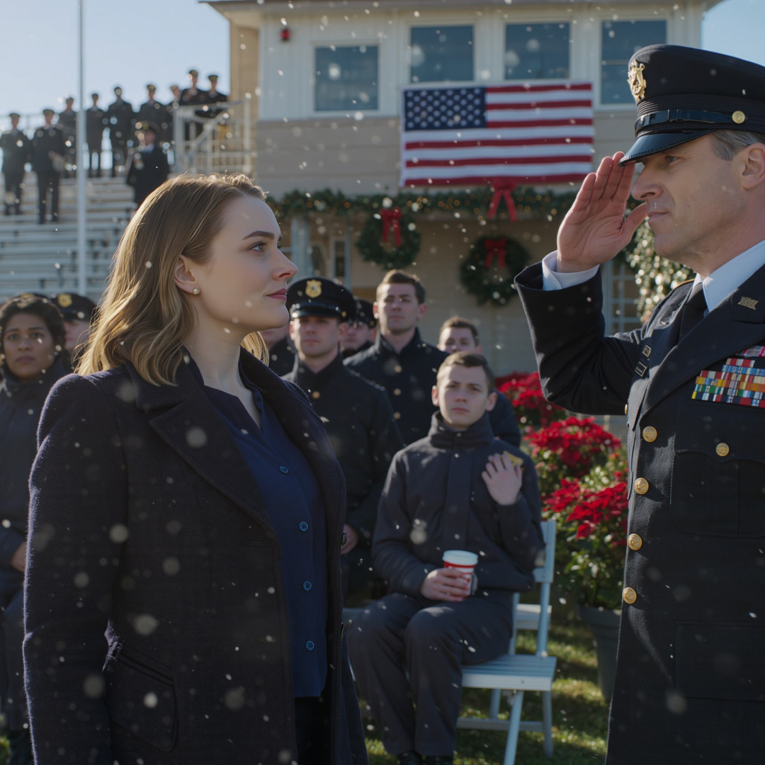 Sierżant sztabowy stanął jak wryty, jego buty mocno wrosły w ziemię, jakby niewidzialny łańcuch zaciskał się wokół jego piersi. Pięćdziesięciu kadetów zamarło za nim. Rodziny na trybunach ucichły. Nawet wiatr zdawał się dusić.
