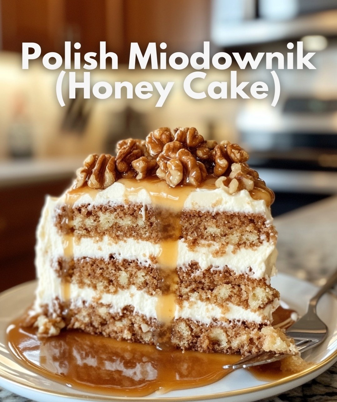 Miodownik to tradycyjne, warstwowe ciasto o cudownym smaku miodu i orzechów.
