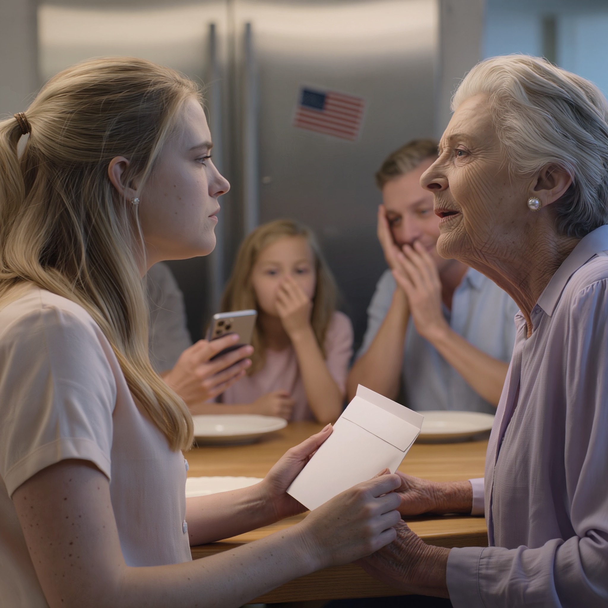 „Twoja babcia to dla ciebie przysłała” – powiedziała mama radośnie, na tyle głośno, by usłyszeli ją rodzice przy sąsiednim stoliku. Tata skinął głową, obejmując ramieniem moją siostrę, która już ustawiała się tak, by znaleźć się w tle na każdym zdjęciu. Uśmiechali się do sali, do telefonów, do historii, którą chcieli, żeby wszyscy zobaczyli.