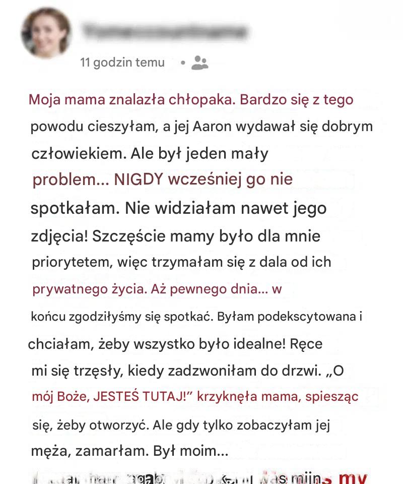 Kiedy moja mama miała 45 lat, znów odnalazła miłość. Chociaż chciałam się cieszyć jej szczęściem, było coś w Aaronie, jej 25-letnim narzeczonym, co budziło we mnie niepokój.