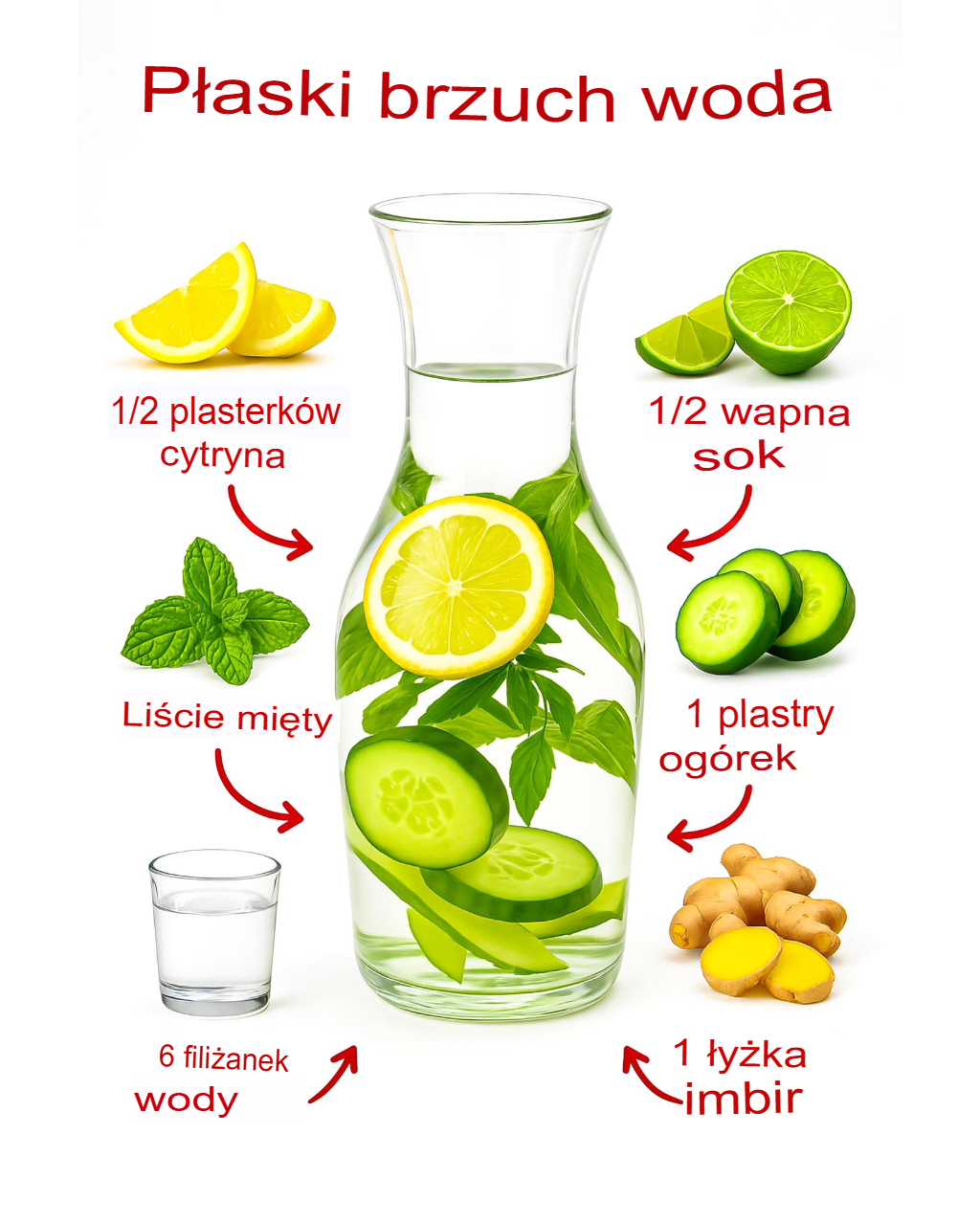 Woda na płaski brzuch to w zasadzie woda wzbogacona, którą uzyskuje się poprzez namaczanie owoców, ziół, warzyw i przypraw w wodzie przez kilka godzin. Idea polega na tym, że naturalne składniki uwalniają swój smak i składniki odżywcze do wody, oferując smaczny i zdrowy napój, który wspomaga trawienie, przyspiesza metabolizm i pomaga zmniejszyć wzdęcia.