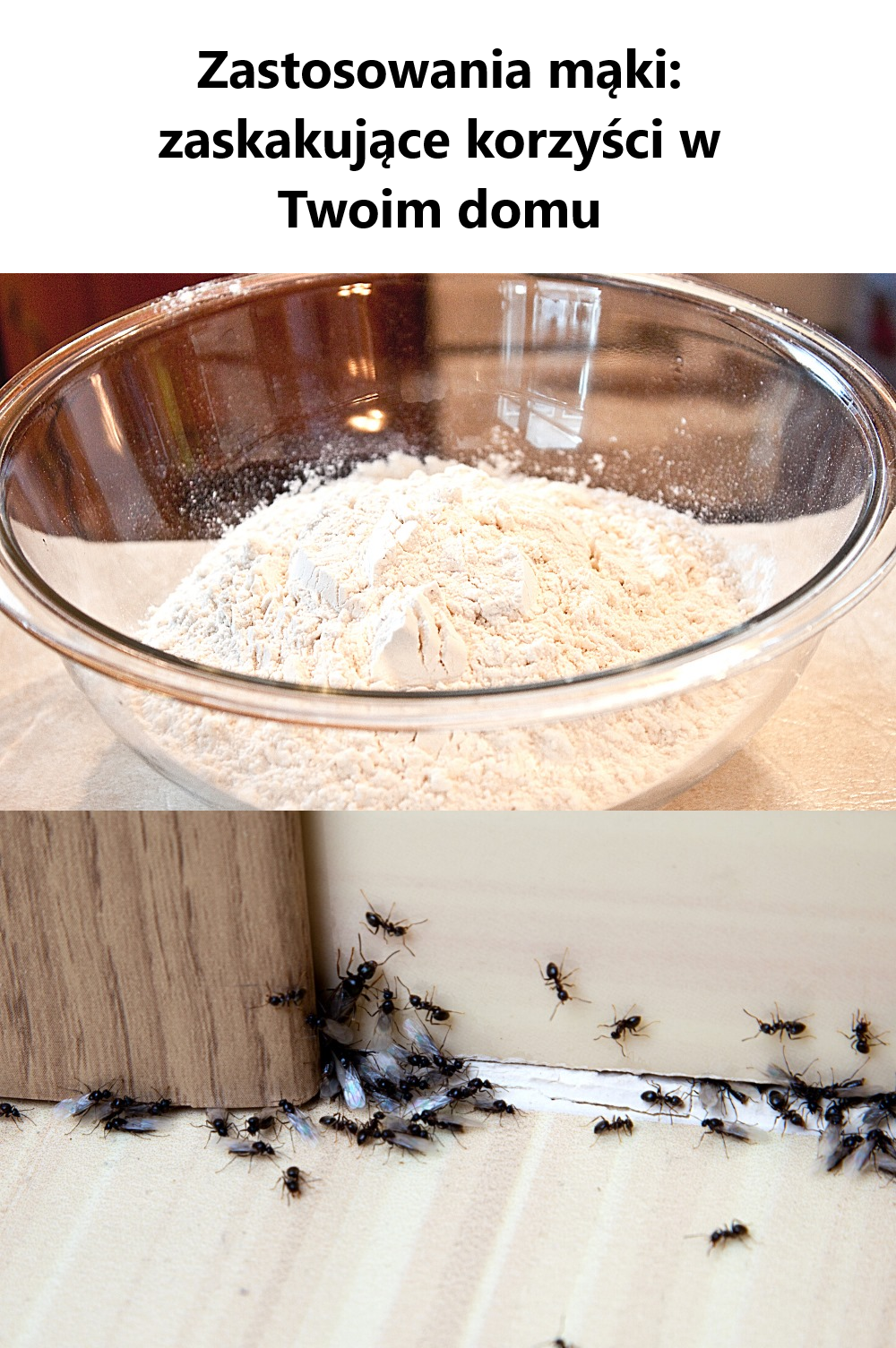 Jeśli masz problem z mrówkami, posyp mąką miejsce, w którym wchodzą i wychodzą. Mrówki nie lubią smaku i konsystencji mąki, więc będą jej unikać.